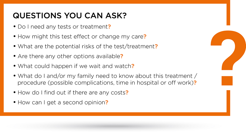 Asking your doctor or other healthcare provider questions about your testing and treatment options will help you make better decisions together.