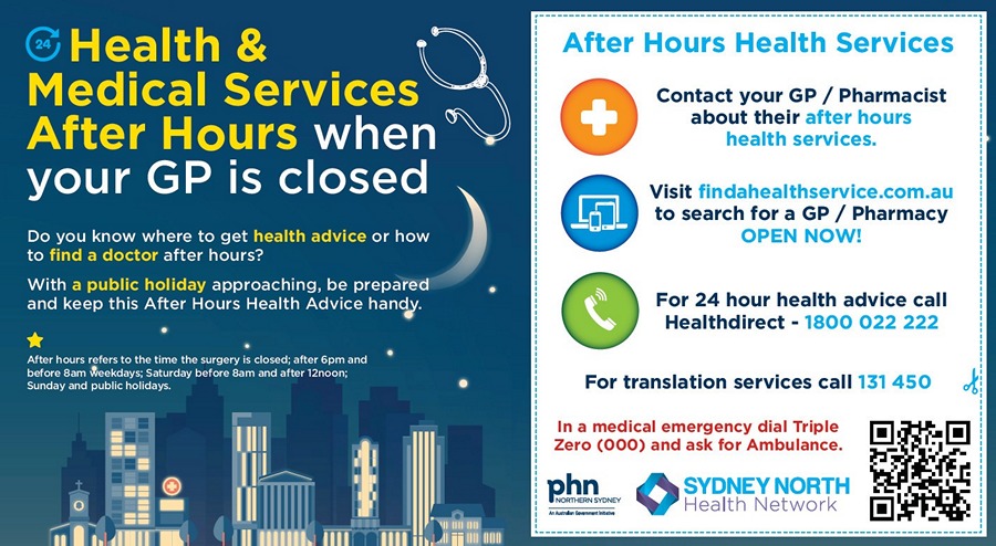 Sydney North Health Network works with doctors and health providers to help coordinate After Hours health and medical services for the residents of Sydney’s north.